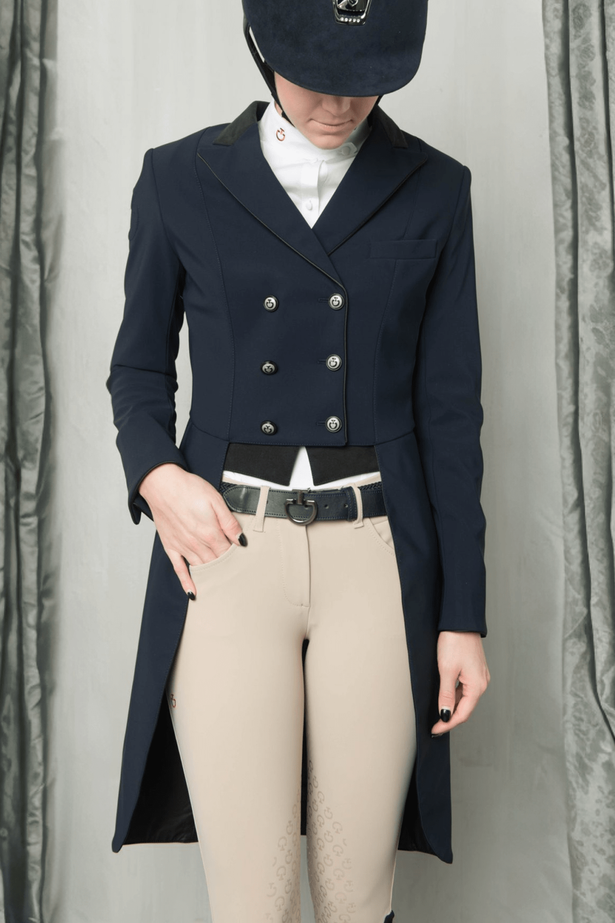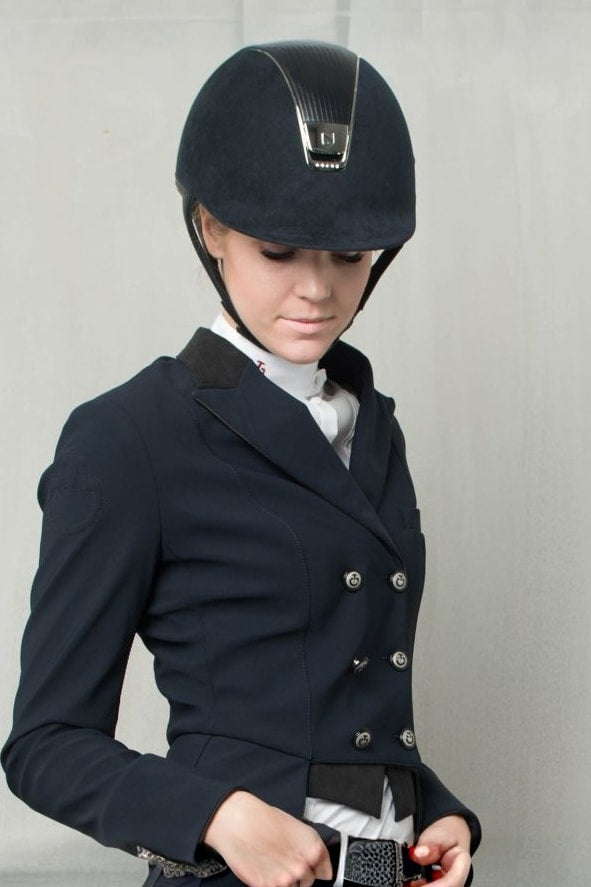 Denne ridefrack fra Cavalleria Toscana kombinerer elegance og ydeevne. Det meget åndbare og vandafvisende tekniske 4-vejs stretchstof følger dine bevægelser uden nogen begrænsninger. Stoffet giver også antibakterielle egenskaber og UV-beskyttelse, ideelt til sportsaktiviteter. Fracken er forfinet med en alcantara-krave, piping og spidser, mens metalknapperne er forfinet med et logo. Looket fuldendes af en funktionel forlomme og et broderet logo på skulderen.