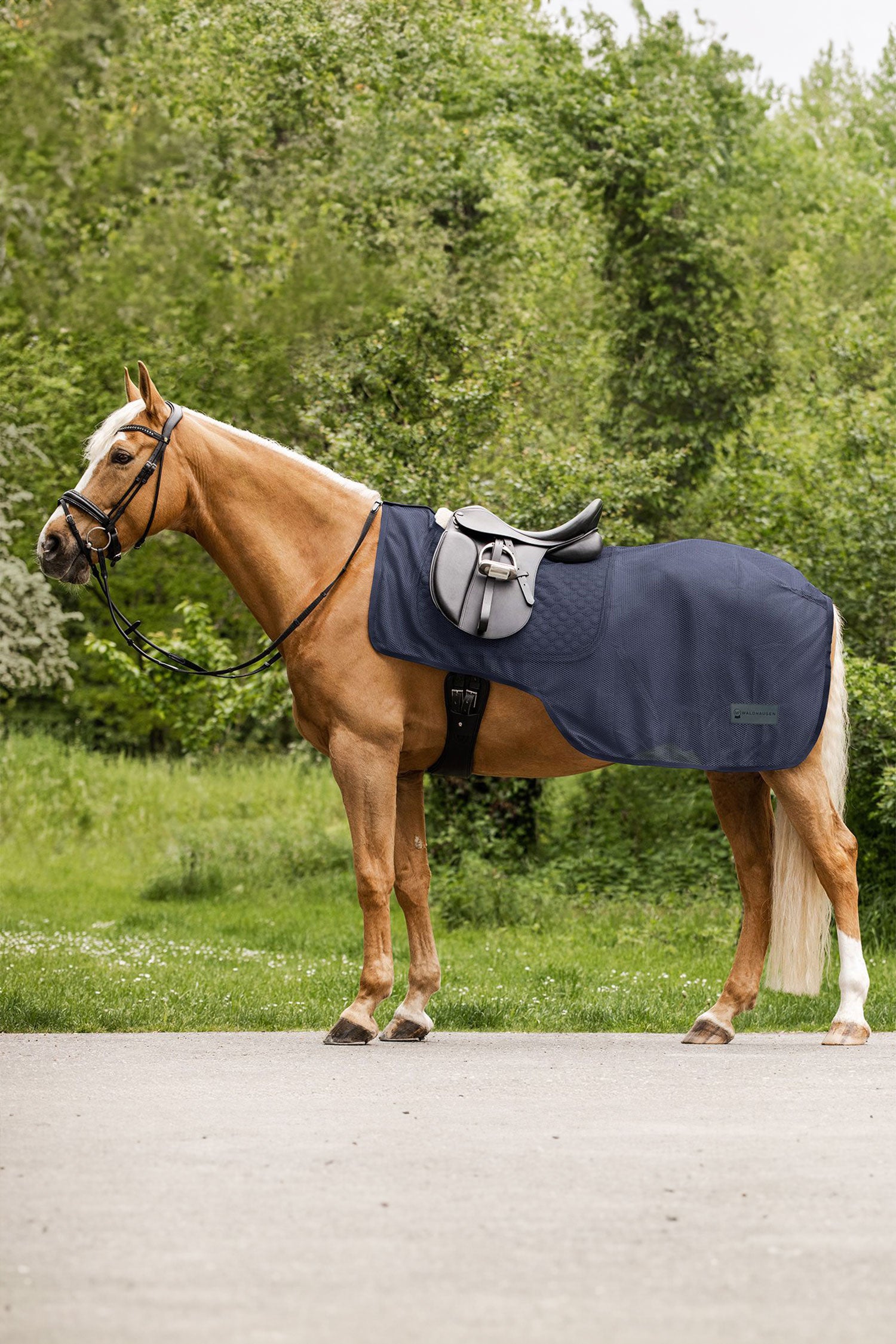 Luftigt flueskridtdækken med høj åndbarhed fra Waldhausen. Dette flueskridtdækken er fremstillet af et ekstra luftgennemtrængeligt netmateriale, der giver optimal ventilation og beskyttelse mod insekter under ridning. Dækkenet har en praktisk velcrolukning ved manken for nem af- og påtagning.