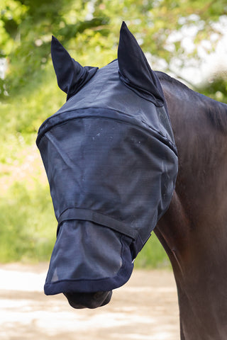 Viele Modelle verfügen über ein feinmaschiges Netz, das schützt, ohne die Sicht des Pferdes einzuschränken.