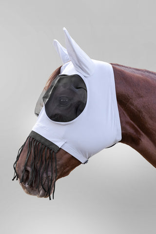 Fliegenmasken bieten einen umfassenderen Schutz und bedecken die Augen und das Gesicht des Pferdes. Sie werden hauptsächlich auf der Weide verwendet und sind besonders gut für Pferde geeignet, die empfindlich auf Insekten oder starke Sonneneinstrahlung reagieren.