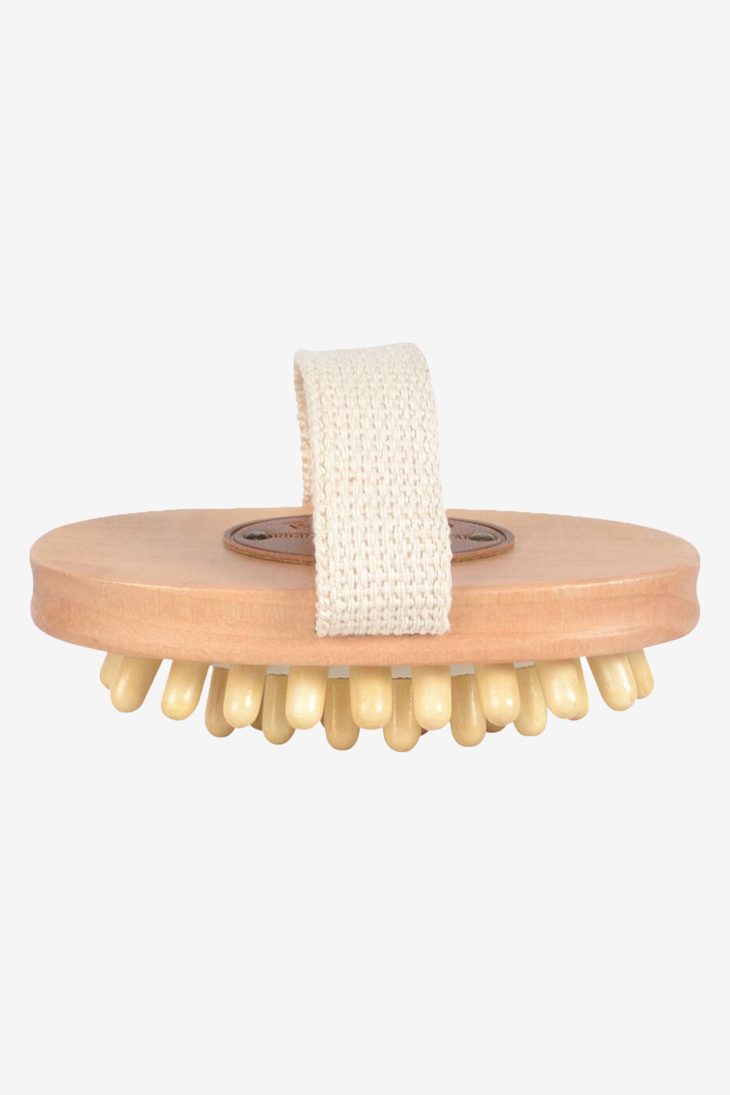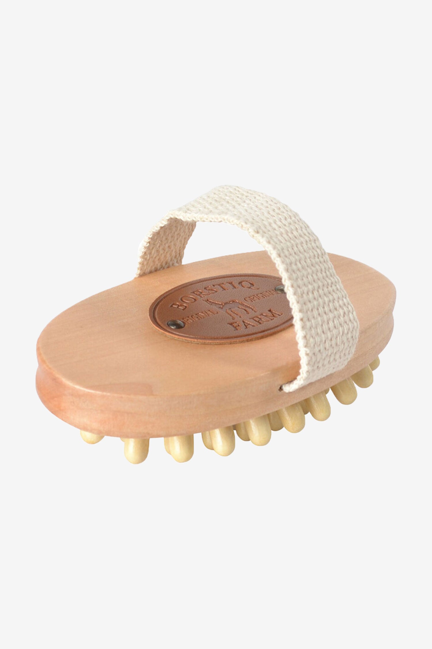 Griffige Massagebürste aus Buchenholz. Ausgestattet mit glatten, runden Holznoppen, die auf einer Gummiplatte befestigt sind und so statische Elektrizität verhindern. Die ergonomische Holzbürste mit breitem Baumwollriemen liegt angenehm in der Hand und erleichtert die Massagearbeit, sodass mit minimalem Aufwand maximale Ergebnisse erzielt werden. Optimal bei Muskelverspannungen, vor oder nach der Arbeit oder für einen angenehmen, gemütlichen Moment mit dem Pferd. Die Massagebürste eignet sich hervorragend, um Liniment in die großen Muskelgruppen des Pferdes einzumassieren. Sie sorgt für eine entspannende Massage, die die Durchblutung anregt, während abgestorbene Haut, lose Haare und hartnäckiger Schmutz an die Oberfläche gebracht werden – für gesündere Haut und ein glänzendes Fell. Die Bürste ist ca. 13 cm lang, die Noppen sind 1 cm lang.
