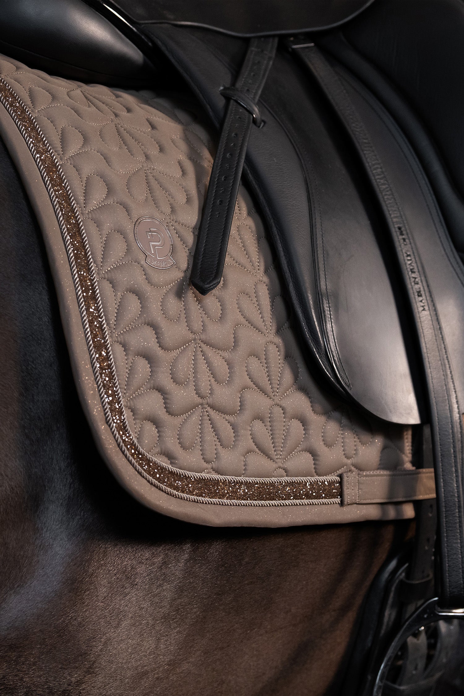 Heben Sie Ihren Reitstil auf das nächste Level mit der exklusiven Eskadron Sparkle Jewel Schabracke aus der Platinum 25 Kollektion in Taupe. Diese Schabracke vereint eleganten Glanz mit funktionalem Design – perfekt für alle, die im Stall, beim Training oder auf dem Turnier auffallen möchten.