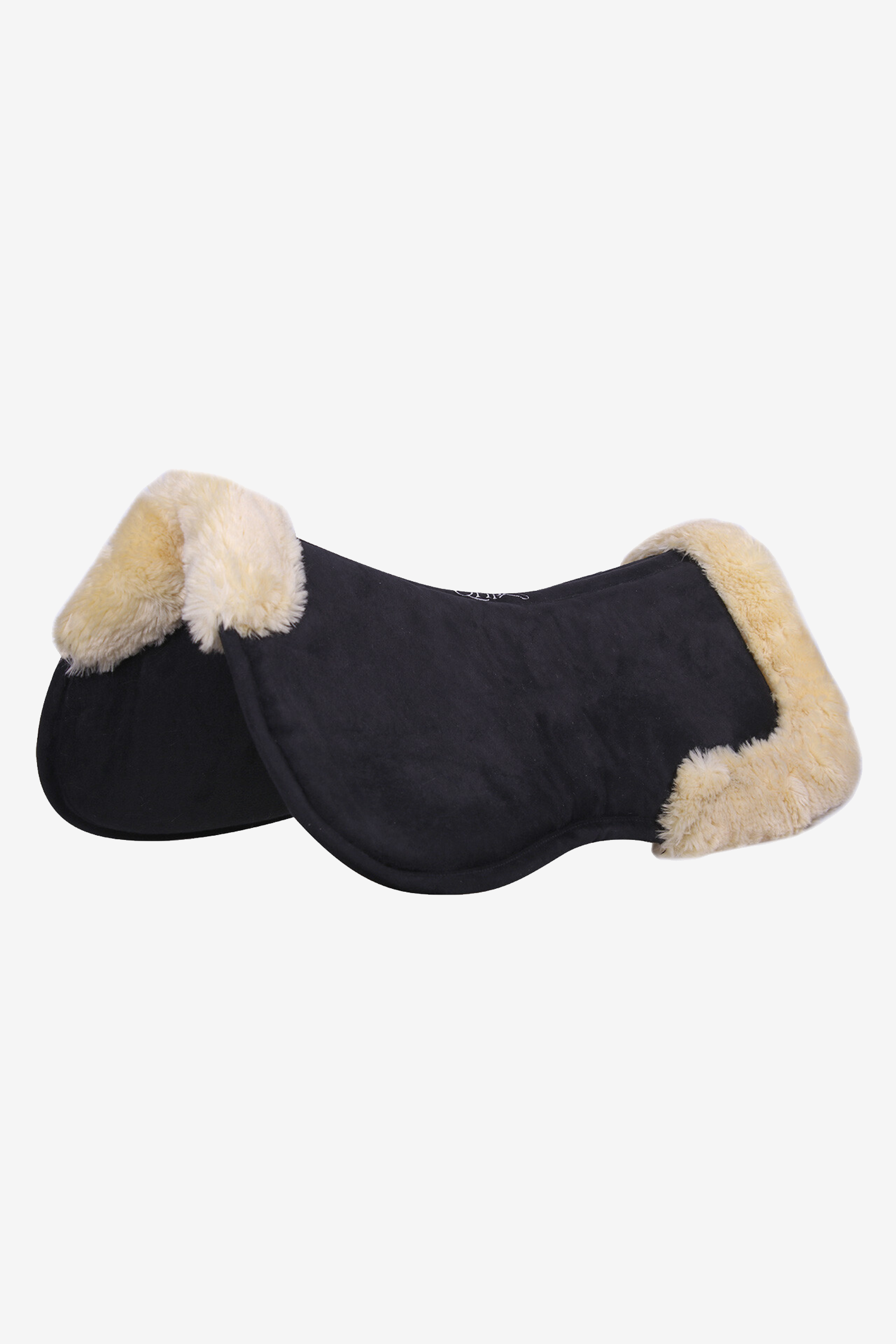 Die Oberseite aus wildlederähnlichem Material bietet guten Halt am Sattel, während die Unterseite aus Fleece hilft, das Pad stabil an Ort und Stelle zu halten. Der weiche Rand aus Kunstfell am Widerrist und hinten erhöht den Komfort und verringert das Risiko von Druckstellen.