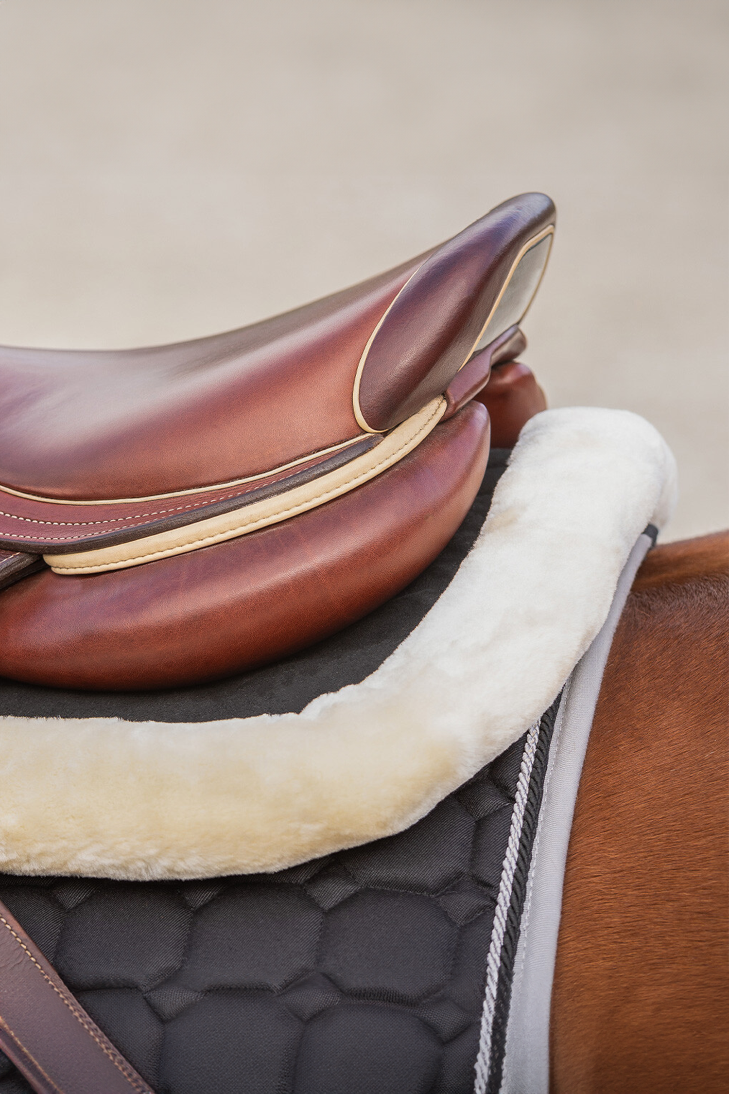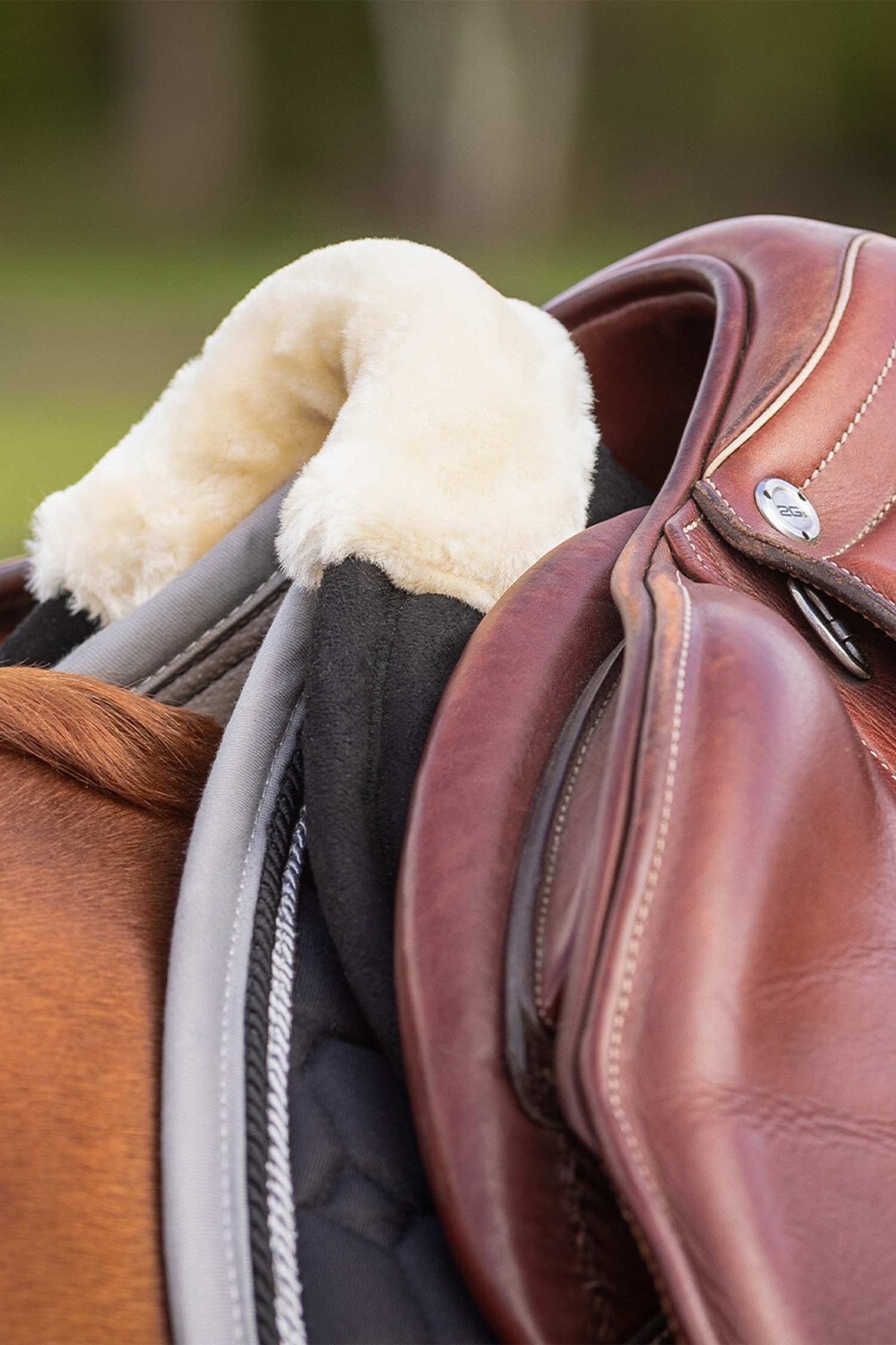 • Weicher Rand aus Kunstfell am Widerrist und hinten