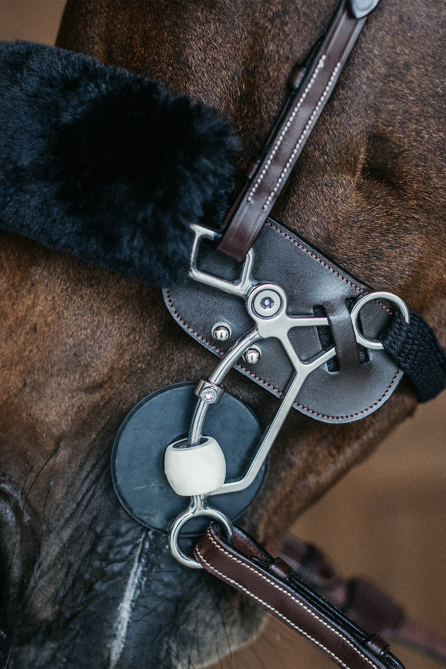Used in combination with a tandem hackamore to protect the horse's sensitive skin from direct contact.