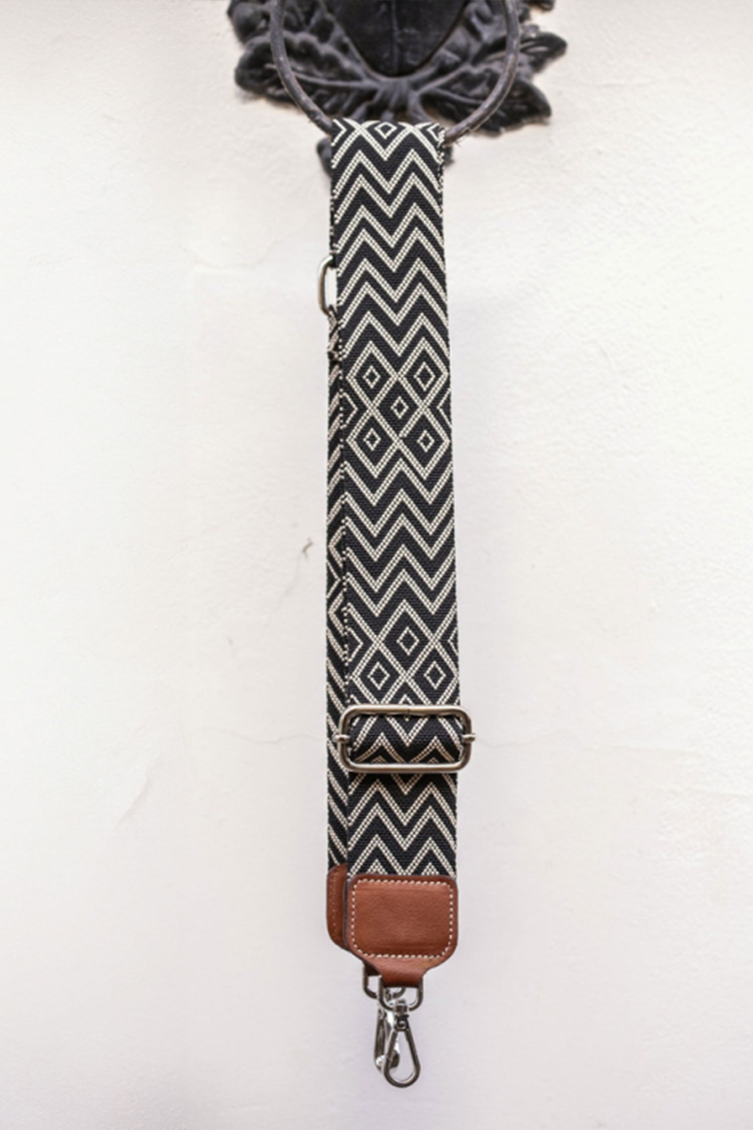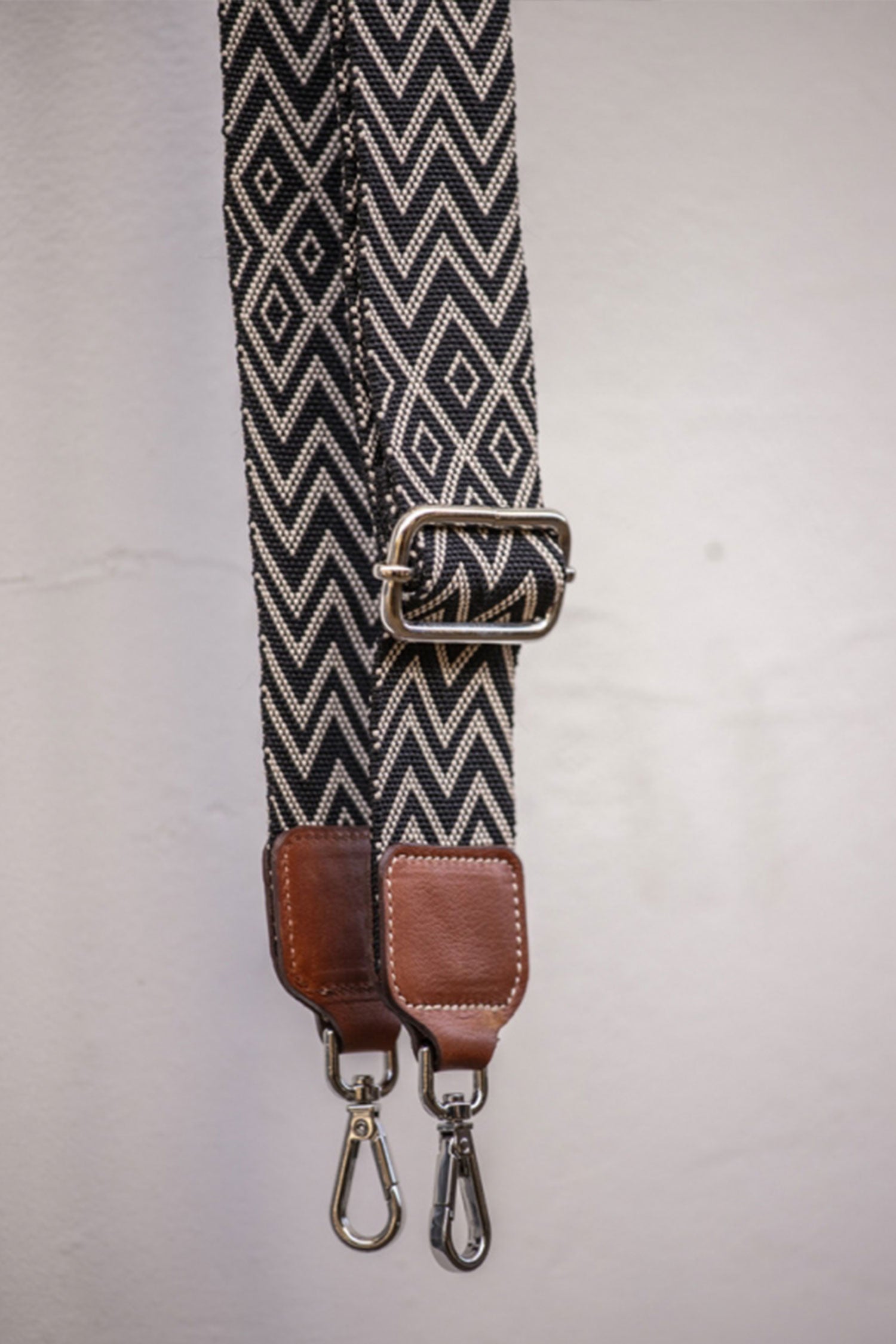 The Pénélope shoulder strap is equipped with two small carabiners and two cognac-colored leather patches at each end. It attaches very easily to all types of handbags or other clutch bags to give a final Pénélope touch to your accessories.