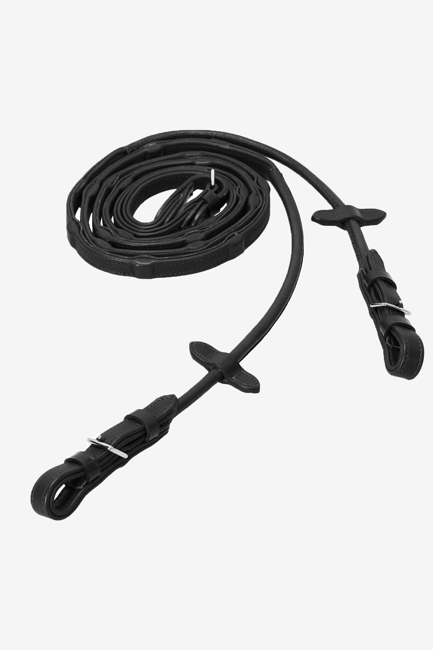 The reins have integrated stops and are 16 mm wide. The rubberized underside provides a very good grip.