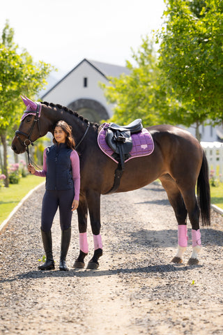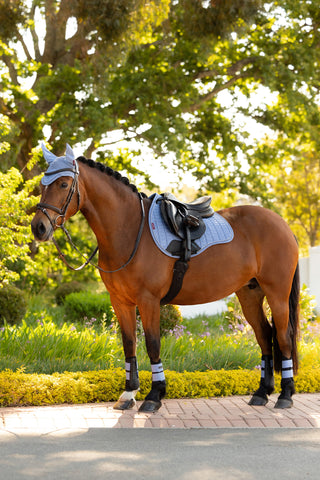 Un tapis de saut est un tapis de selle spécialement conçu pour le saut d'obstacles. Il est généralement coupé de façon anatomique pour offrir une liberté supplémentaire au niveau du garrot et il est plus court que les tapis polyvalents ou de dressage, afin de s'adapter à une selle de saut. Comment savoir si le tapis convient à votre selle ? Assurez-vous que le tapis ne glisse pas, qu'il repose uniformément sous la selle et qu'il ne comprime pas le garrot. Les tapis de saut existent dans de nombreux coloris, motifs et matériaux – parfaits pour assortir au reste de votre équipement.