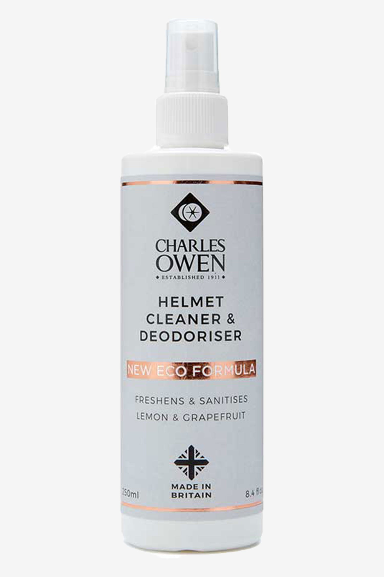 Le nettoyant & déodorant casque 2-en-1 de Charles Owen est conçu pour garder votre casque et sa doublure en parfait état. Cette formule écologique combine le nettoyant et le désodorisant pour casque de Charles Owen dans un flacon pulvérisateur pratique avec pompe. Le nettoyant & désodorisant pour casque élimine la saleté et la graisse. Il enlève efficacement la sueur, la crème solaire, le maquillage et la poussière pour que votre casque et sa doublure restent propres et frais.