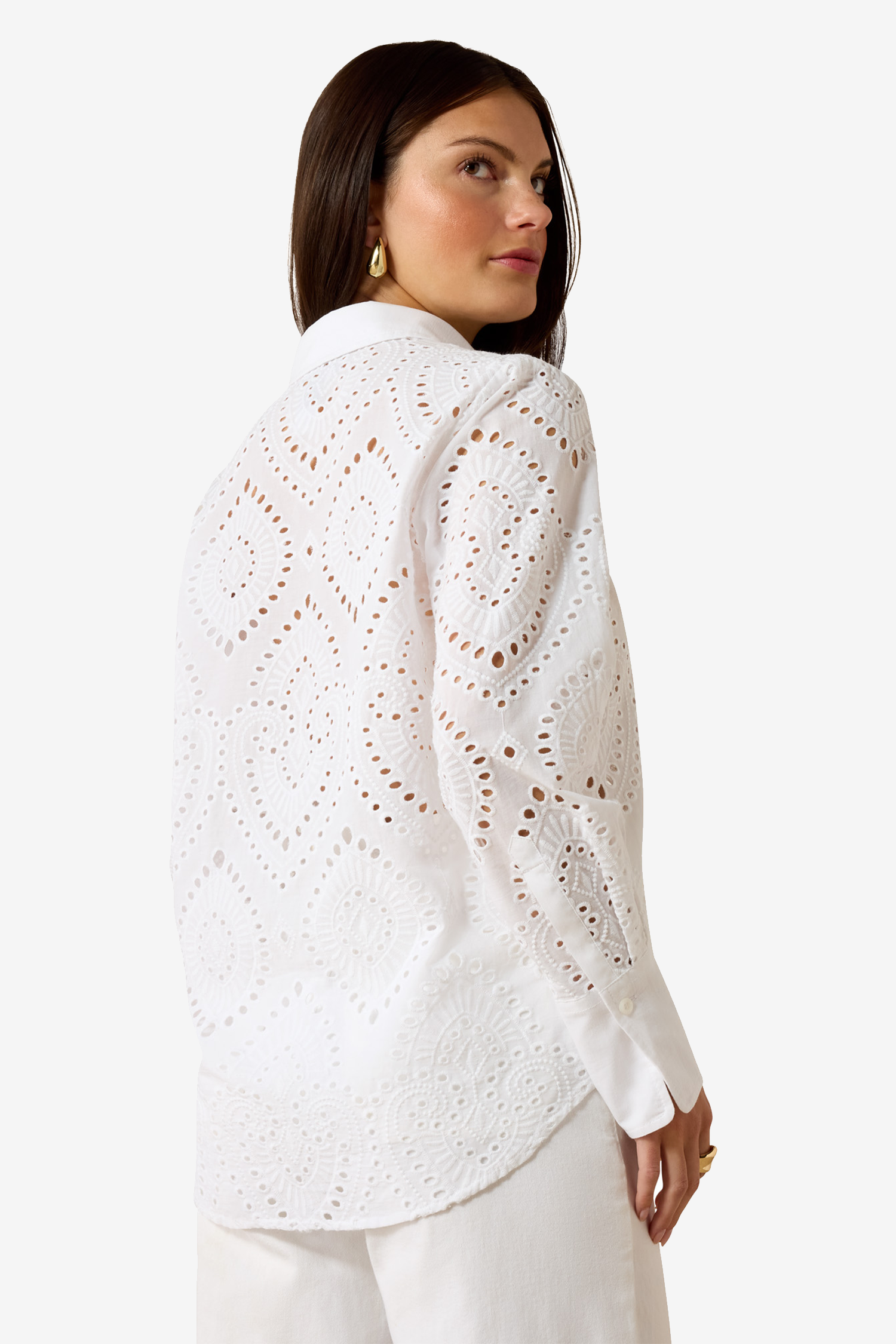 De Ariat Millington blouse is een vrouwelijke en luchtige blouse die elegantie combineert met ontspannen comfort. Gemaakt van prachtige katoen met geborduurde opengewerkte patronen die een zachte en zomerse uitstraling geven. De diepe knoopsluiting aan de voorkant zorgt voor een stijlvol detail en maakt het kledingstuk eenvoudig aan te passen aan elke gelegenheid.