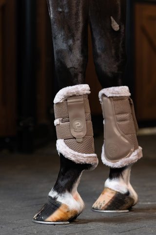 Bescherm de hoeven van je paard met comfort en stijl met de Eskadron Boots Imitatiebont uit de Platinum 25 collectie in Smokey Taupe. Deze boots zijn ontworpen om optimale bescherming te bieden tegen overtrappen en stoten, terwijl de zachte imitatiebont voering schuren en druk voorkomt – perfect voor gevoelige paarden.