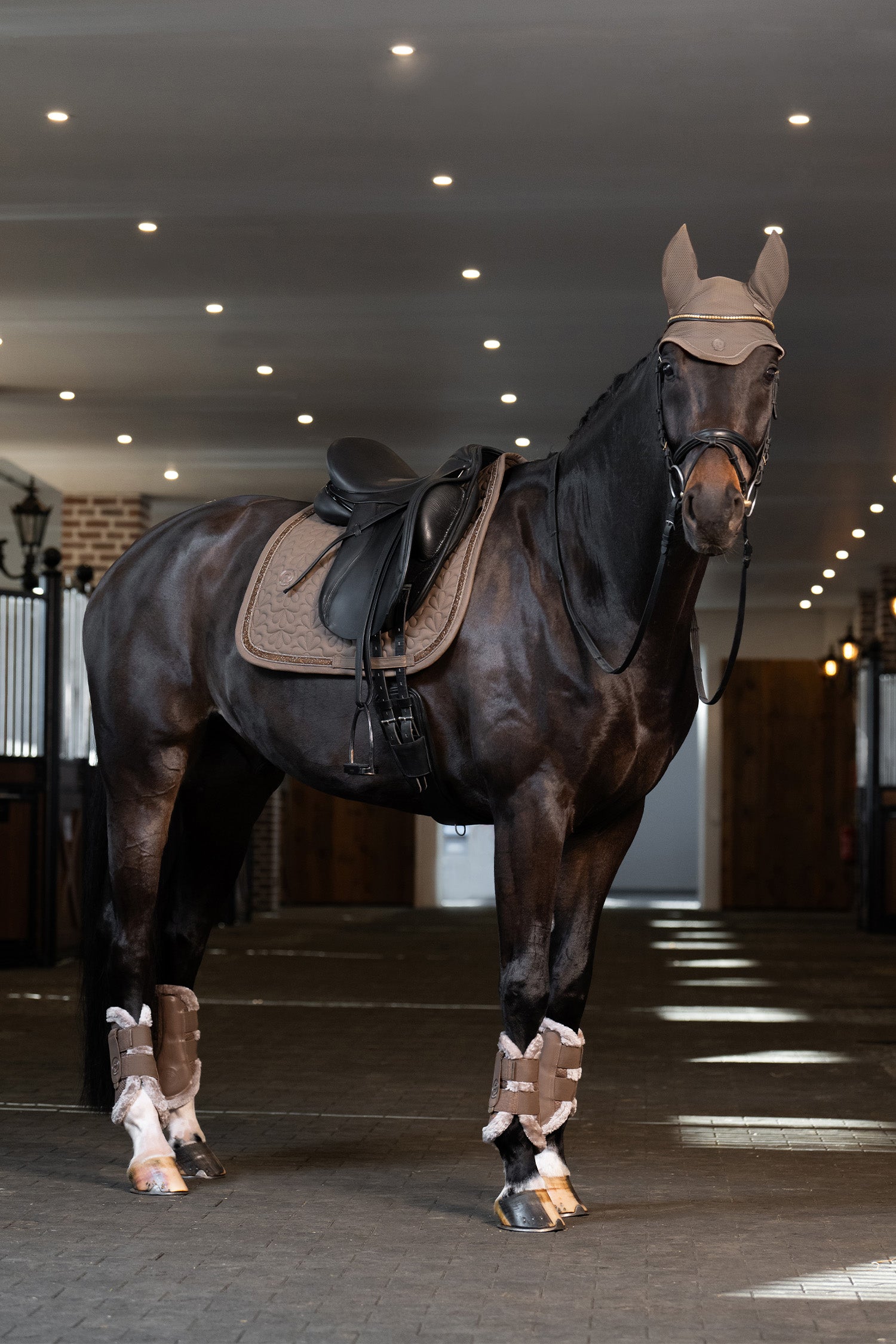 Het buitenmateriaal bestaat uit duurzaam 3D-mesh dat optimale ventilatie biedt, waardoor de benen koel blijven, zelfs tijdens intensieve training. Aan de binnenkant bevindt zich een zachte, synthetische imitatiebont voering die schuren en druk voorkomt – perfect ook voor gevoelige paarden.