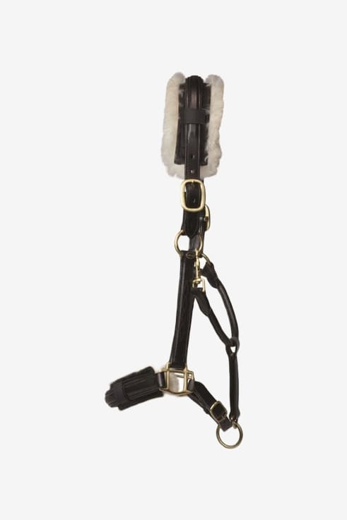 De nekbeschermer kan eenvoudig worden bevestigd aan het kopstuk of de hoofdband van bijvoorbeeld een trens of een halster.