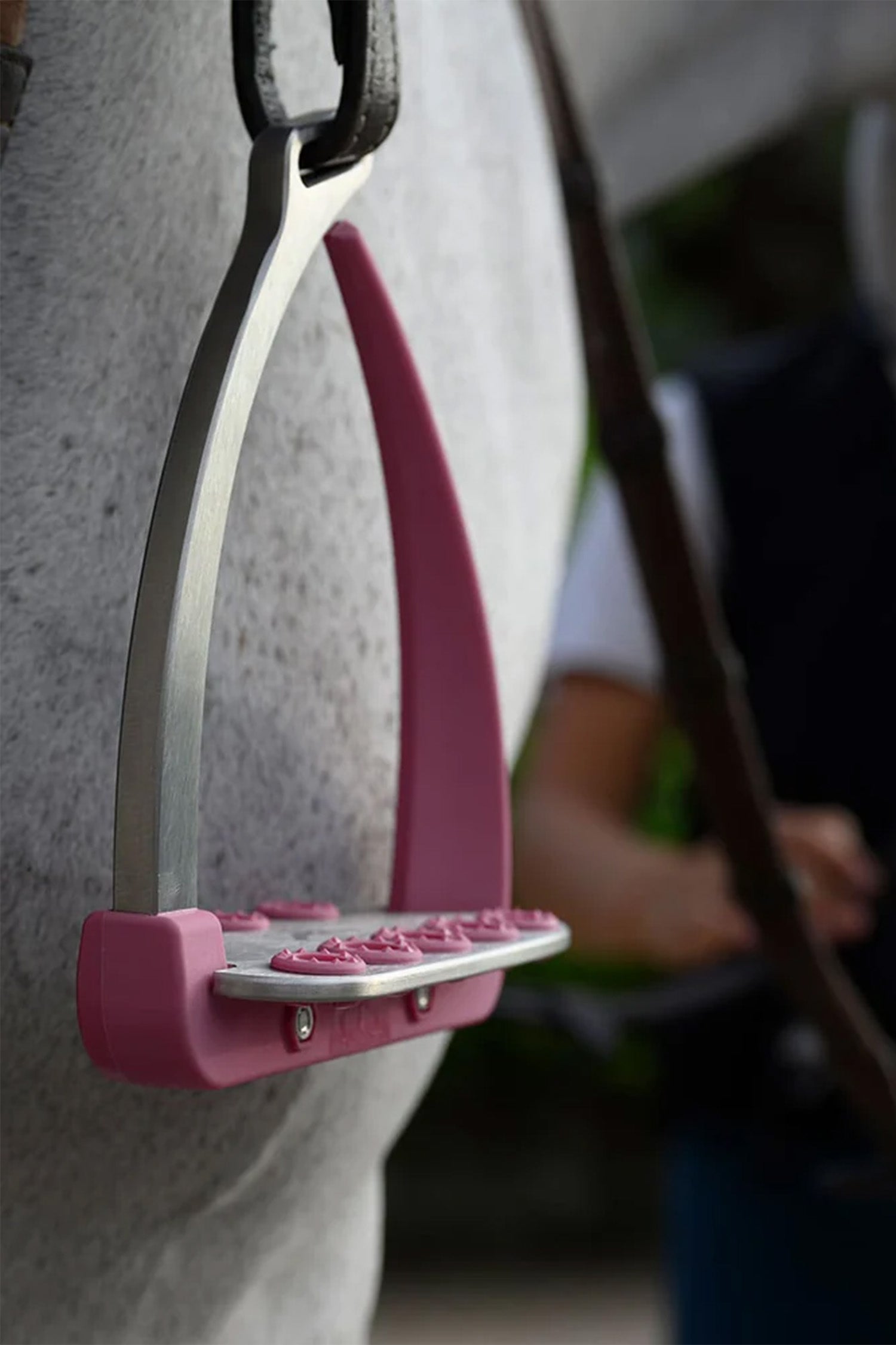 De witte Veredus Steel1-beugels maken de set compleet – gemaakt van staal en flexibel techno-polymeer voor maximale veiligheid, grip en balans in het zadel.