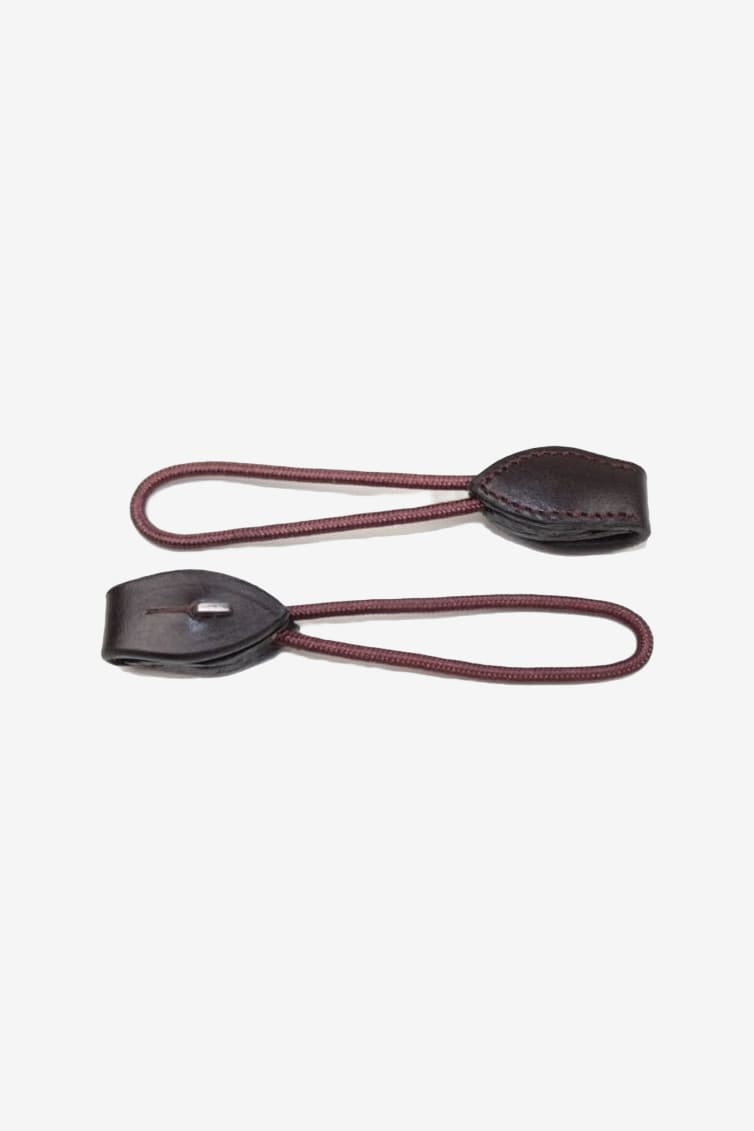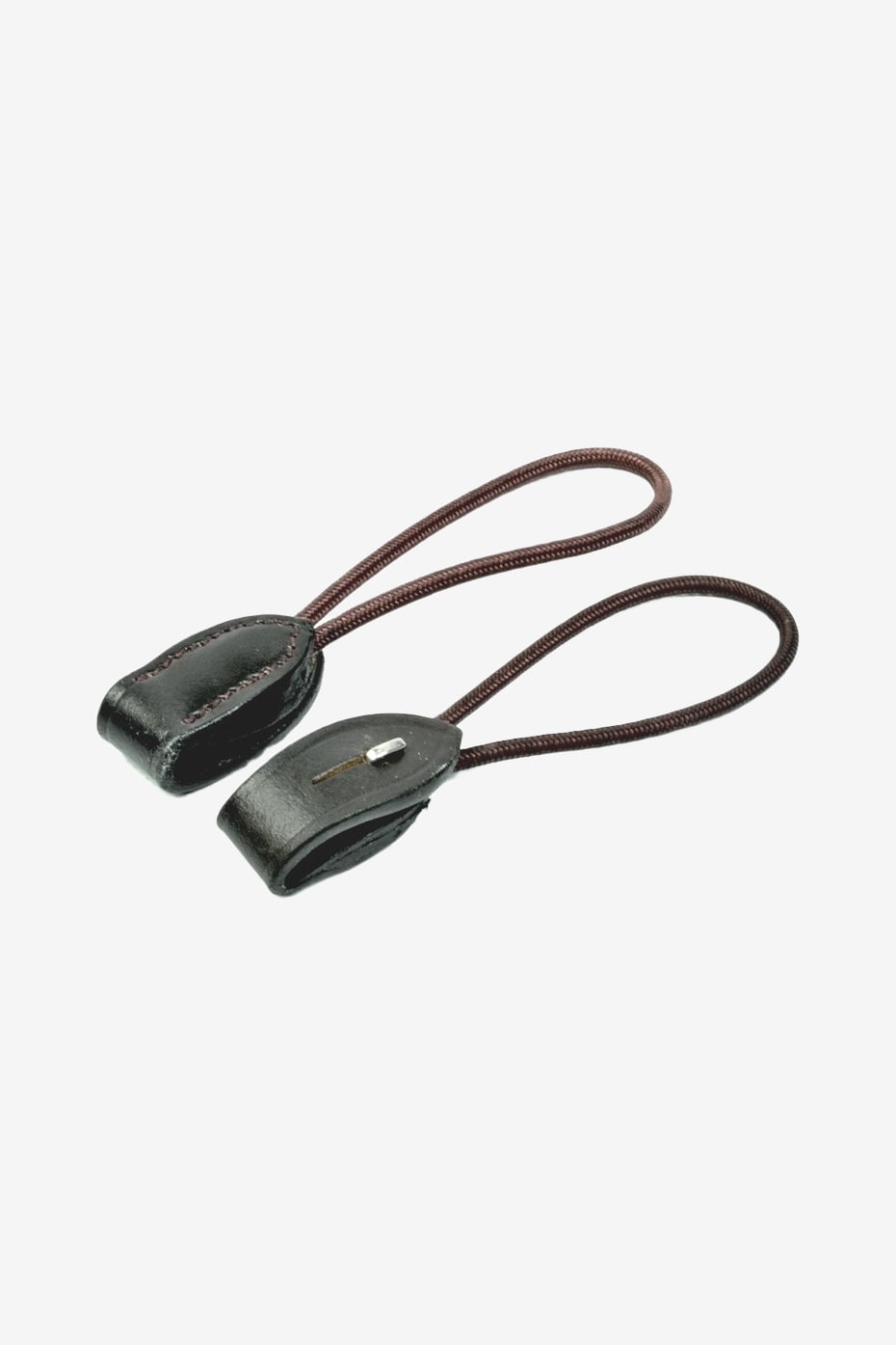 Leren riem die aan het onderste deel van het bit wordt bevestigd, verbonden met een dunne nylonriem die door en rond het bovenste deel van het bit wordt gehaald voordat het onderste deel wordt vastgemaakt.