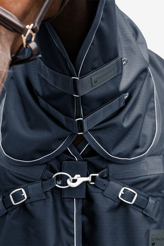 Een perfecte deken voor overgangsperiodes en milde dagen – de Waldhausen Nordic regendeken, 50g, biedt betrouwbare bescherming tegen wind en regen, terwijl de lichte vulling een dunne warmte toevoegt zonder te warm te worden. Het duurzame 600 denier ripstop-materiaal weerstaat dagelijks gebruik en weersinvloeden, terwijl de hoge functionaliteit het beste comfort voor je paard garandeert.