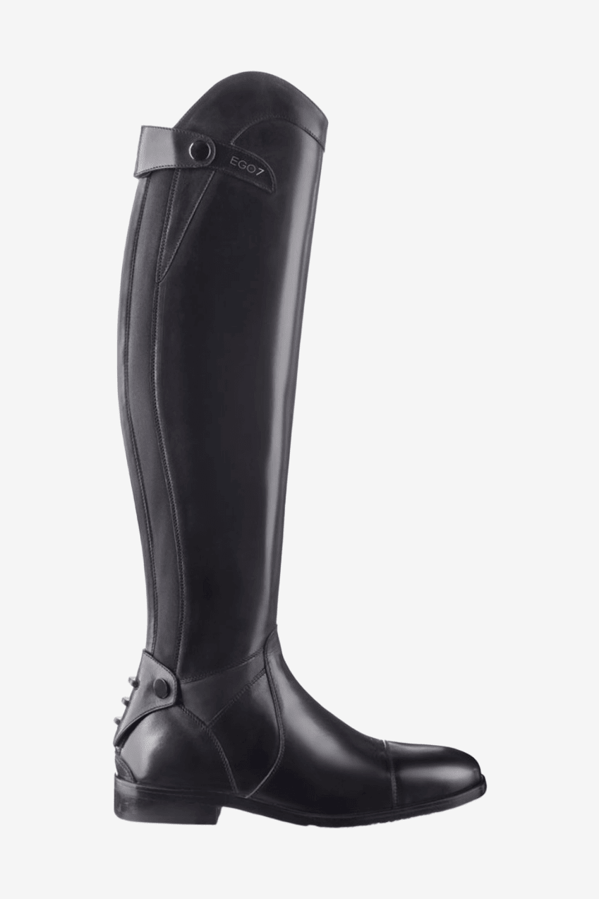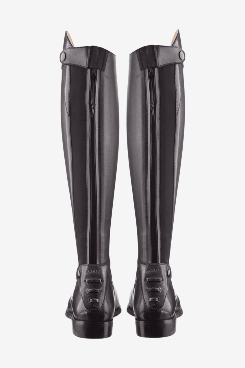 Stövlarna är tillverkade av full grain läder av hög kvalitet och extra mjukt läder över vristen för ökad komfort. Hel dragkedja av extra starkt material baktill med resår ger en stabil och hög komfort med rörelsefrihet och passform likt en måttanpassad stövel. På insidan av vaden har man bytt ut full grain lädret till det innovativa och väldigt slitstarka E-tex materialet. Dels skyddar det vaden bättre och ger även ett bra grepp och kontakt med hästen och sadeln. Baktill finns ett sporrstöd i plast med tre olika lägen för sporren som håller den stadigt på plats.