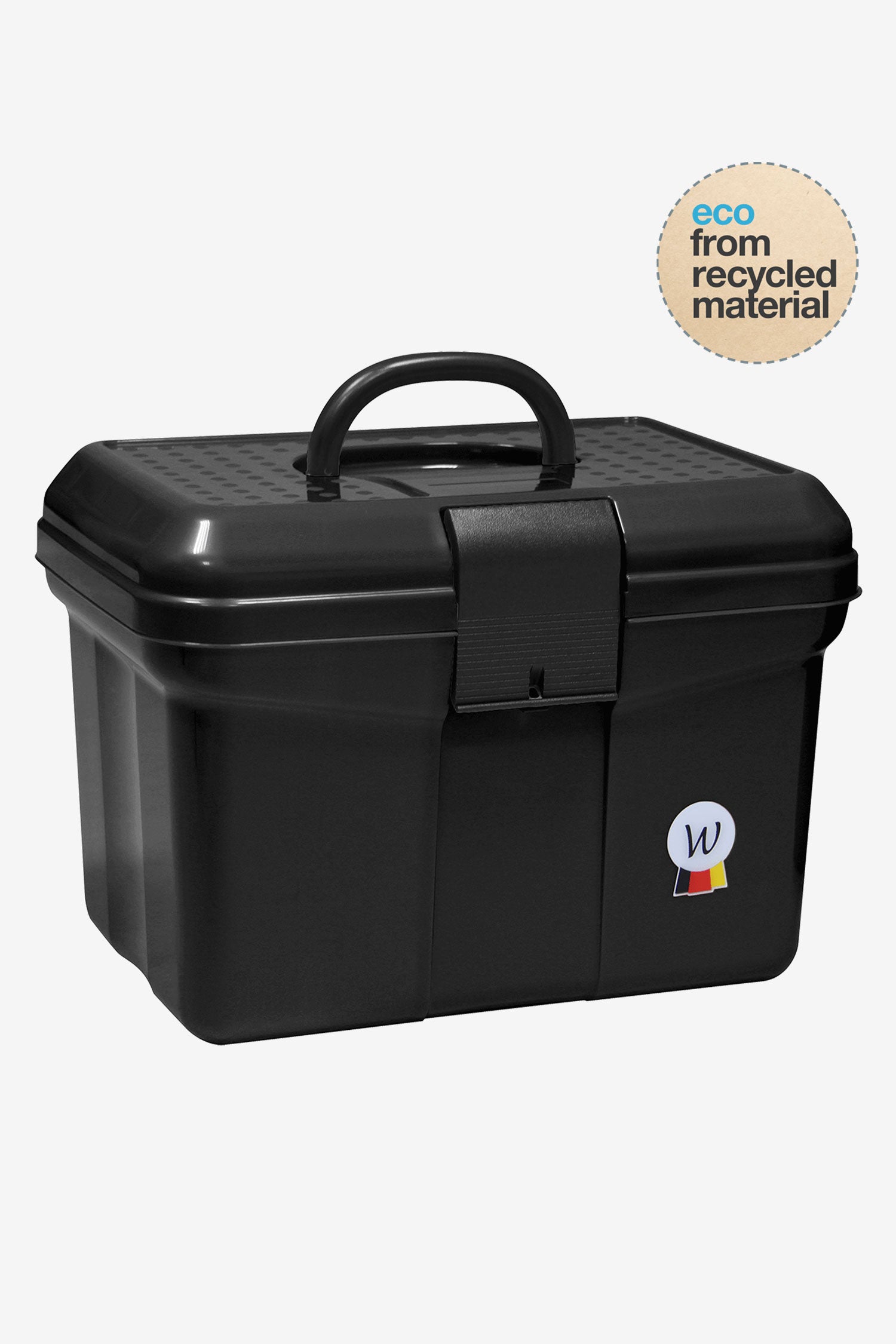 Grooming väska från Waldhausen. En grooming bag i hög kvalité gjord från återvunnen plast. Passar väldigt bra i stallet eller på tävling. Lätt att ta med sig tack vare sin låga vikt, kan bäras i ett bekvämt handtag på ovansidan. Starkt spänne på framsidan och löstagbara delar inuti för att anpassa den perfekt så som du vill ha den.