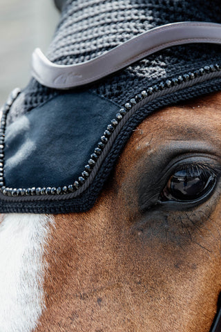 Utsidan är av mjukt sammetstyg och sytt med ett snygg fiskbensmönster. Inga remmar framtill utan endast vid sadelgjorden. Kentucky logo på vänster sida i veganskt läder. Placerad något högre upp så det finns plats för egen brodyr om så önskas.
