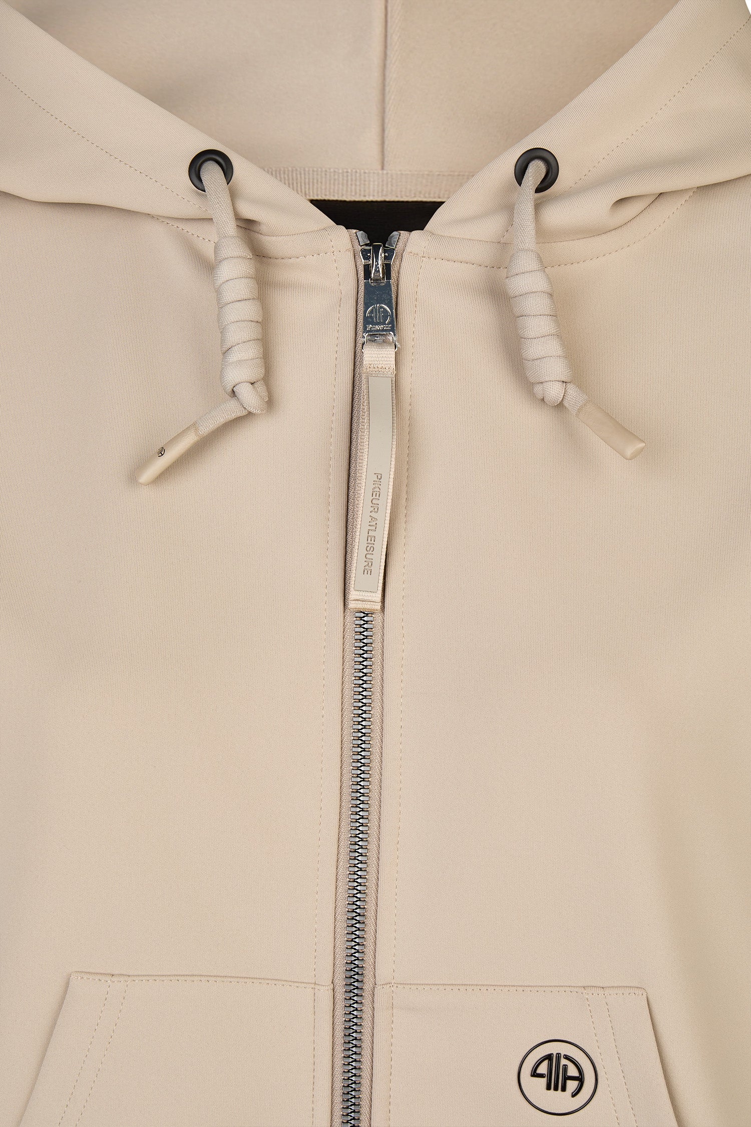 Den eleganta färgen Almond ger ett tidlöst och trendigt uttryck, medan de diskreta logodetaljerna på bröstet och den stora PIKEUR-tryckningen på ryggen skapar en exklusiv look. Ribbstickade muddar i ärmslut och nederkant ger en snygg passform och extra komfort.